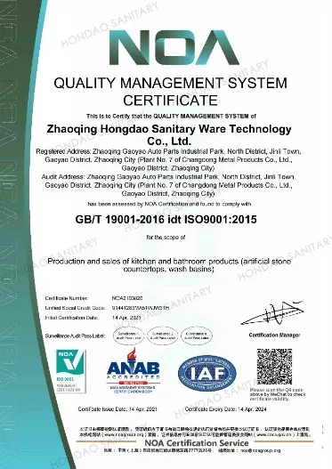 HONDAO has two major production bases: Zhaoqing Hongdao Sanitary Ware Technology Co., Ltd. and Jiangxi Haisheng Sanitary Ware Co., Ltd. After years of continuous development, it has become one of the largest manufacturers of artificial stone products in China.